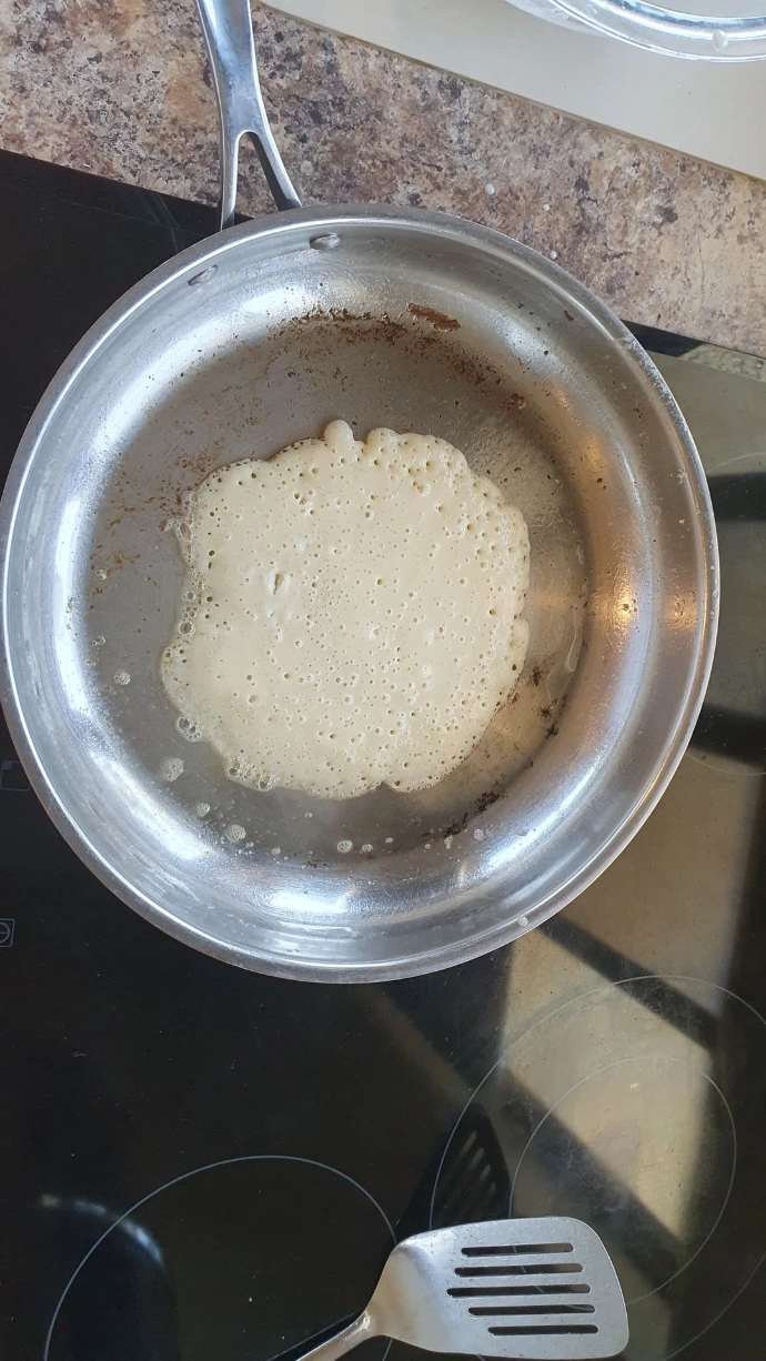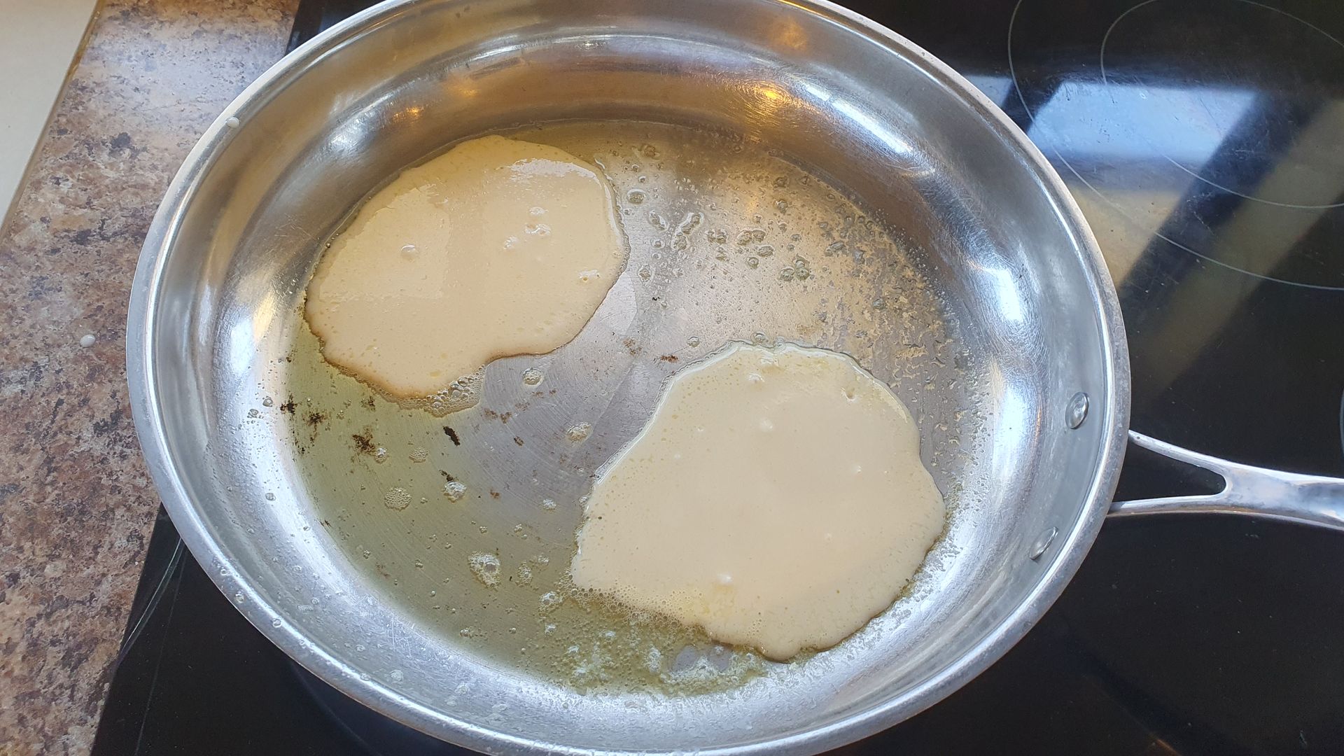 - Heat a large non stick pan (I use stainless steel scanpan) over medium heat and grease lightly with butter.