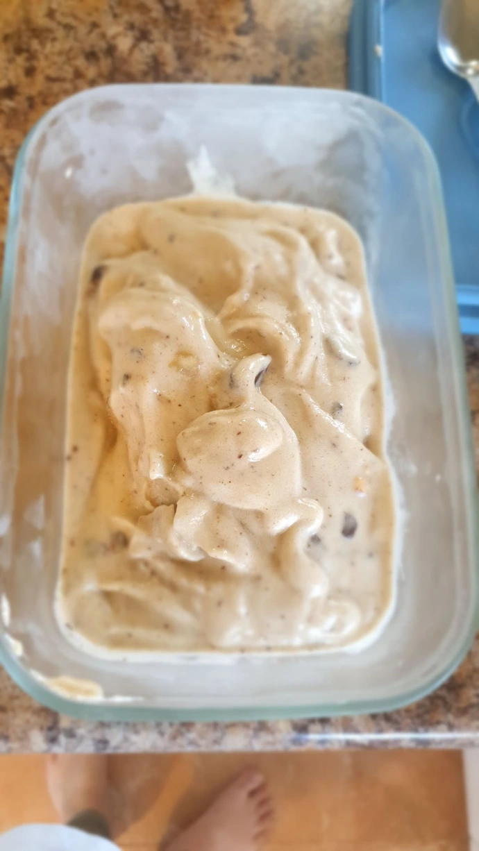 - Optional add chocolate chips to make this a chunky monkey ice-cream